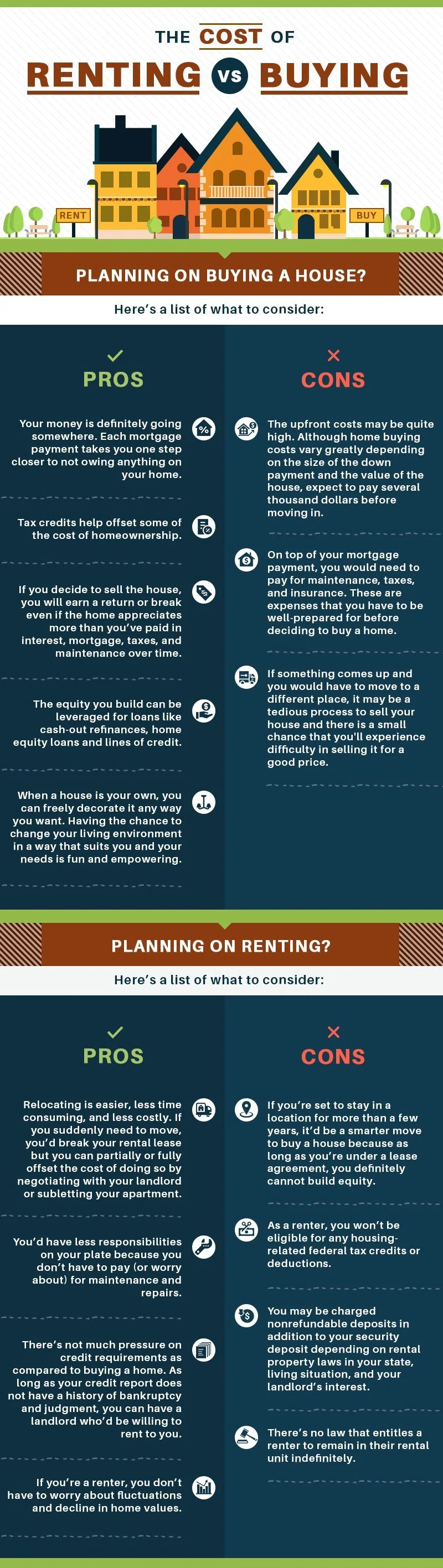 Let’s first weigh the pros and cons of buying a house and renting one.